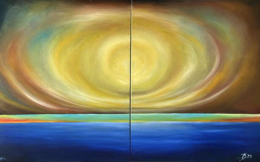 Acrylic, mixed media on canvas. 80x60 cm «Travel through time, changing energies, principles, ideas about the world like a frequency on a...